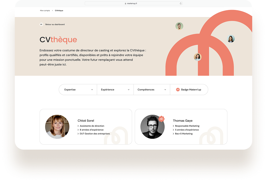 Matern’Up n’est pas une agence classique : c’est une plateforme spécialisée qui vous aide à trouver facilement un remplaçant quand un salarié part en congé maternité, paternité ou parental.